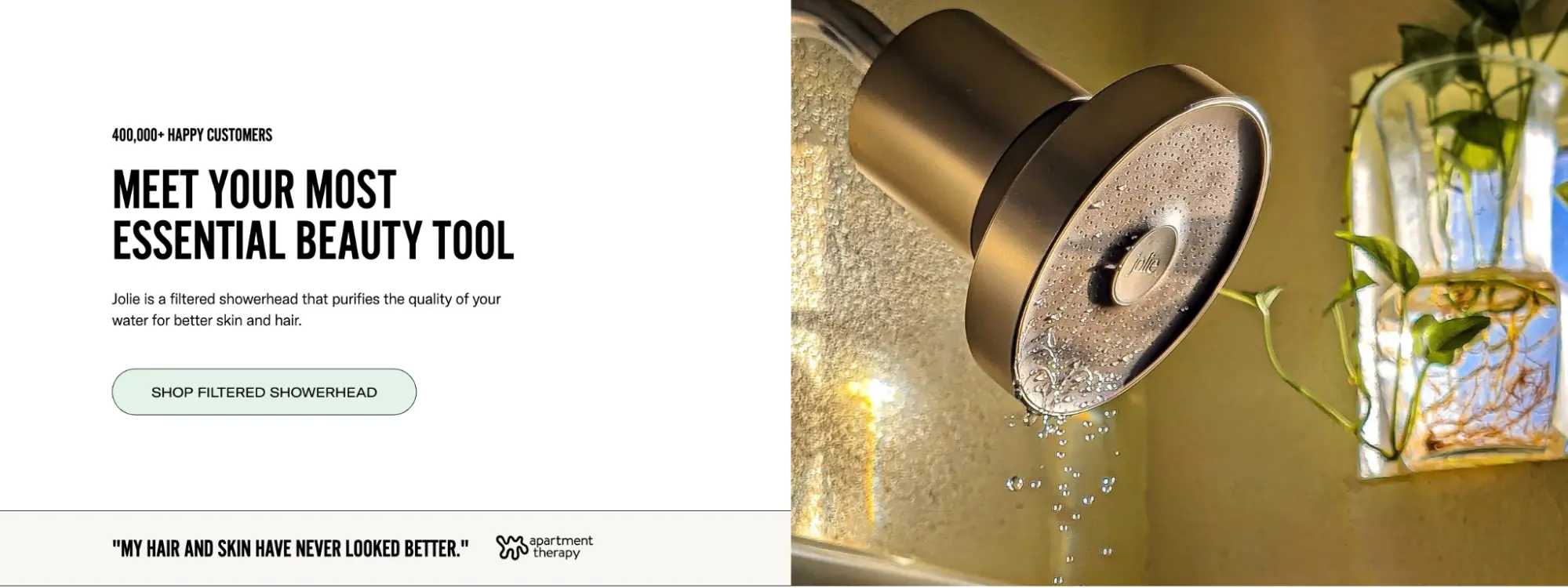 There is no doubt that clicking the green CTA button on this page will allow visitors buy the filtered showerhead. Clear, relevant, personalized CTA button copy helps maintain clarity for visitors and allows them to focus on the page goal.
