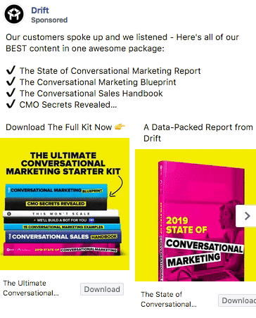 Intercom’s ad promotes their free guide. The copy outlines for users why they need to get the guide and the image showcases the guide’s front cover. The CTA button copy “Download” is relevant to the ad offer: