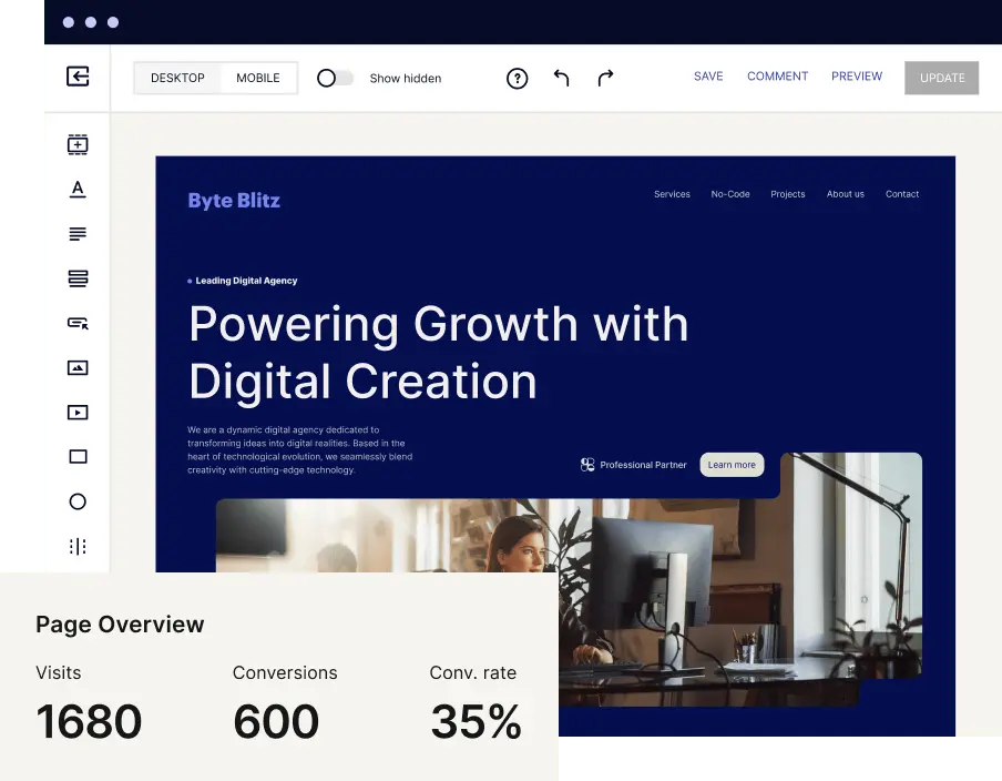 Drive ad campaign performance using targeted landing pages. With over 500+ layouts, AI-content generation, built-in collaboration, Instablocks®, and quick page load technology, you can easily create landing pages that deliver an unparalleled user experience that gets more people buying.